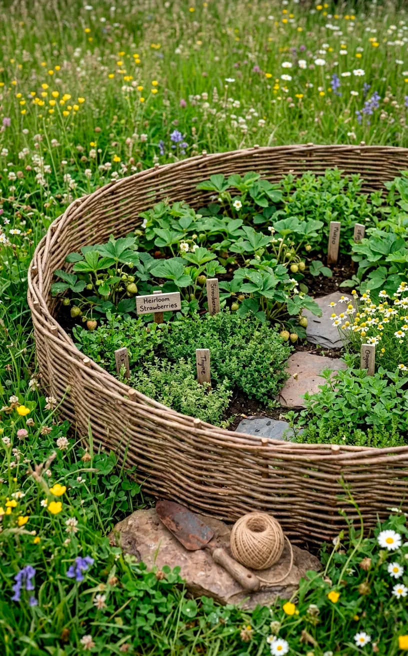 For a rustic, Old World feel, nothing beats the Woven Willow Circle. You use flexible willow or hazel branches to weave low fences around circular garden beds. It looks like something straight out of a cottagecore dream. I find that these natural borders add a soft, organic texture that plastic or cold metal just lacks. It’s perfect for those shorter heirloom varieties like ‘Tom Thumb’ peas or bushy alpine strawberries. Natural materials blend seamlessly into a wooded or traditional landscape, providing a cozy home for your plants. It’s a bit of a DIY project, but the bragging rights are worth every splinter. FYI, this layout also does a great job of deterring smaller critters who aren’t quite ready to hop over a woven fence.