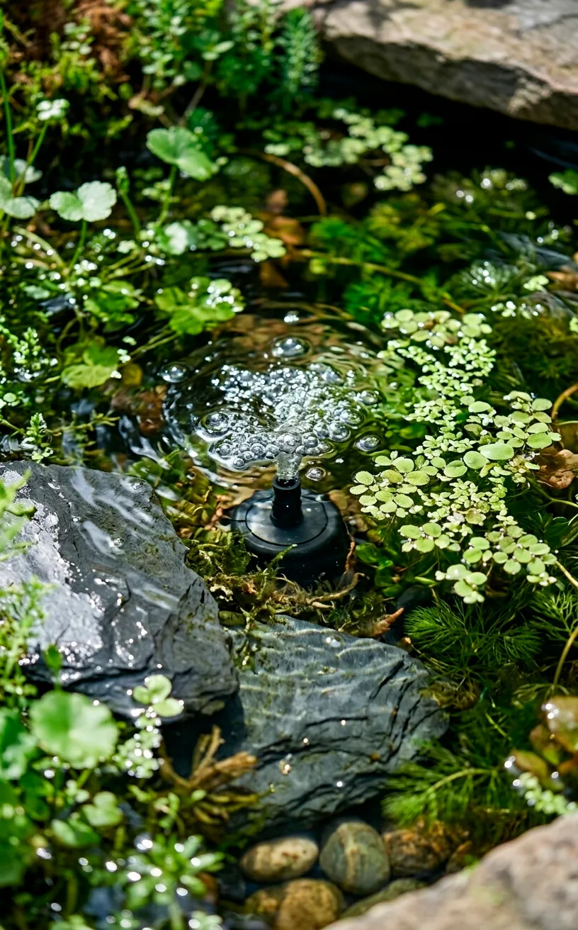 You don’t need a massive fountain. A gentle bubble is enough to keep the surface tension broken. If you’re feeling fancy, you can even find pumps that double as tiny waterfalls.