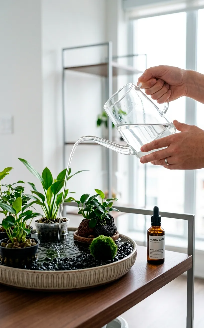 Maintenance isn’t a chore if you do it right. I spend about ten minutes a week on mine. You mainly need to top off the water as it evaporates and trim any yellowing leaves to keep the garden looking sharp. Use dechlorinated water every single time. Tap water contains chemicals that can nukes your delicate plants and any critters you’ve added. I keep a simple gallon jug of treated water under the sink for quick refills. If you notice a film on the surface, your circulation might be too low, or you are overfeeding your shrimp. It is a balancing act, but once the ecosystem stabilizes, it practically runs itself. 🌿
