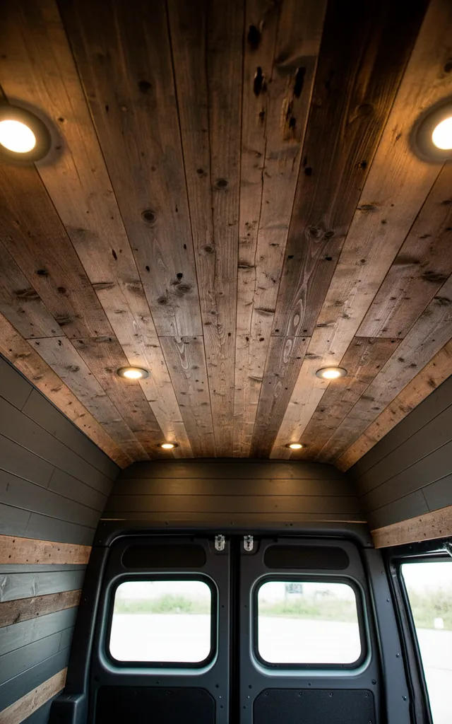 Your wood choice dictates the “temperature” of the van. I suggest reclaimed barn wood or cedar for that authentic, rugged texture. Smooth, blonde plywood looks great for Scandi vibes, but we want industrial, right? Aim for deep grains and visible knots that play off those clean metal lines. I once used old pallet wood for a ceiling, and the character it added beat any store-bought plank. Just sand it well unless you enjoy splinters!