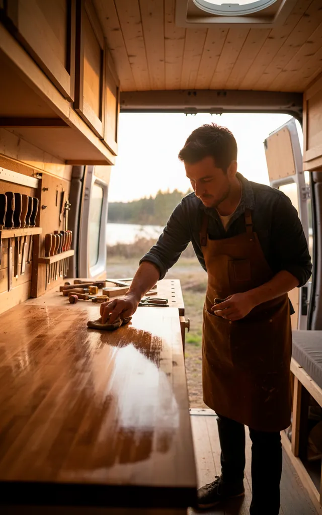 Metal and wood both hate moisture, and vans are basically humidity traps. Seal your timber with a high-quality matte polyurethane to prevent warping. I treat every steel edge with clear coat or paint to stop the inevitable rust monsters. Check your seals regularly unless you want your “chic” interior to crumble. Maintenance sounds boring, but it protects your massive investment. A little elbow grease now saves a lot of heartbreak later.