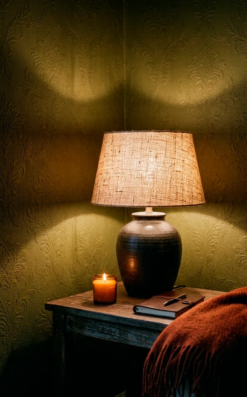 Ditch the overhead glare and use lamps with linen or woven shades. These materials break up the light and cast a soft, textured glow across your walls that instantly makes the room feel intimate.