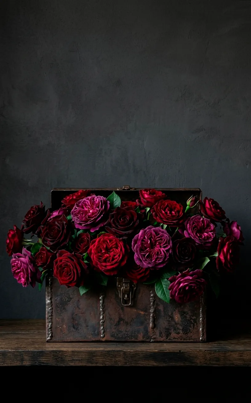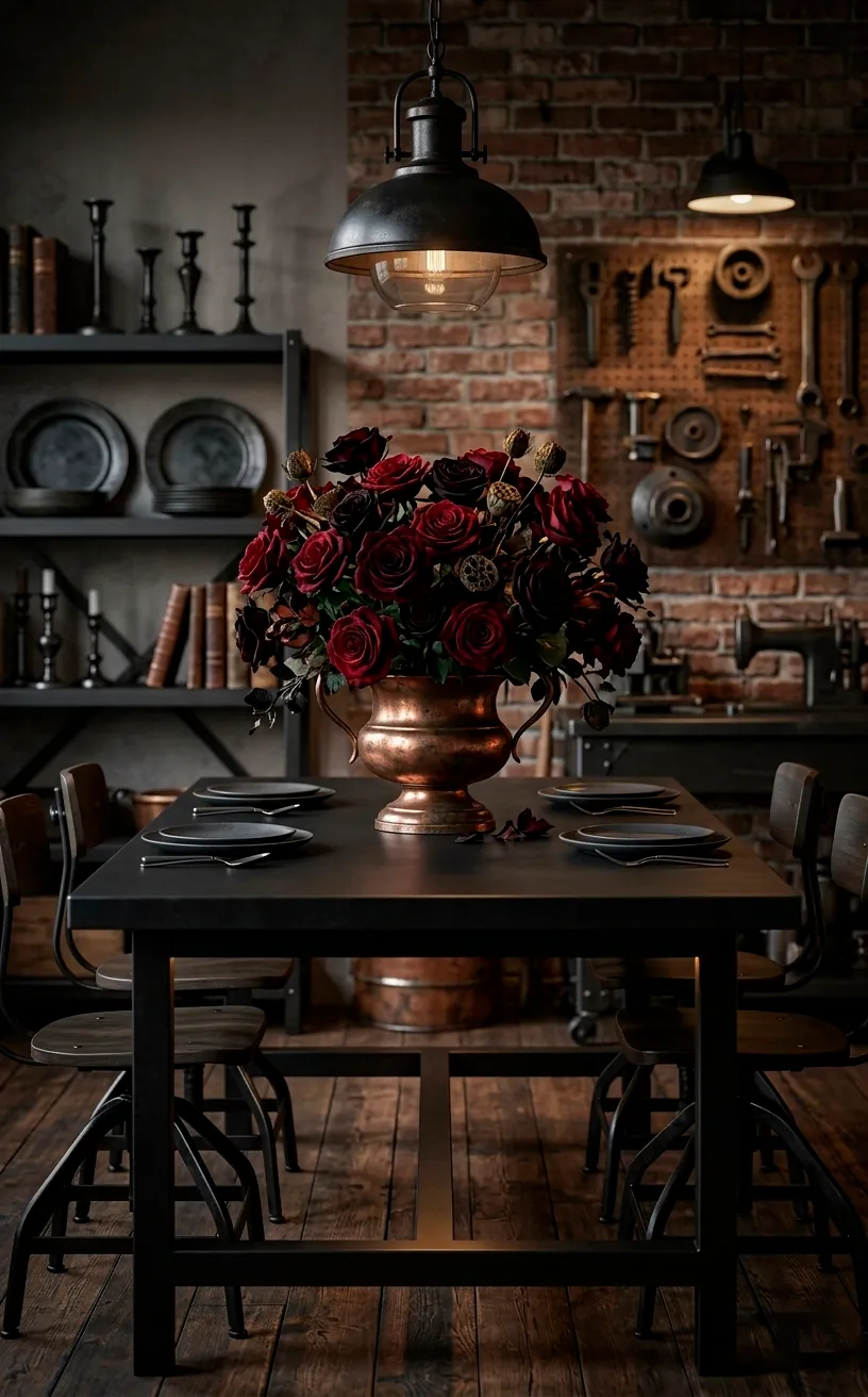Not all roses fit the gritty romance vibe. To keep things sophisticated, I always lean toward deep crimsons, dusty mauves, or even black roses like the Black Baccara. These moody shades bridge the gap between the dark metal and natural beauty. Are you tired of the same old bright pinks that scream baby shower? If so, these muted, antique-looking blooms are your best friends. They feel timeless, almost like they grew out of the cracks of a brick wall. IMO, a single, slightly wilted rose in a heavy iron gear-base looks way cooler than a perfectly manicured bouquet in a glass vase. It adds a layer of perfectly imperfect realism that keeps your home feeling lived-in rather than staged. 🌹