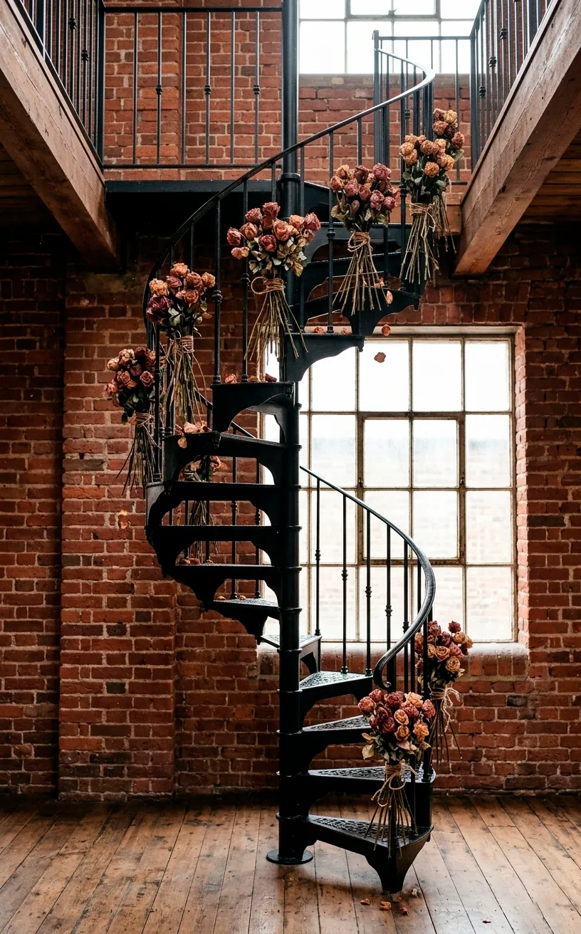 Sometimes the metal isn’t just the vase; it’s the backdrop. An exposed brick wall or a matte black iron railing serves as the perfect canvas. Integrating these elements ensures the theme flows through the whole room rather than just sitting in one corner.