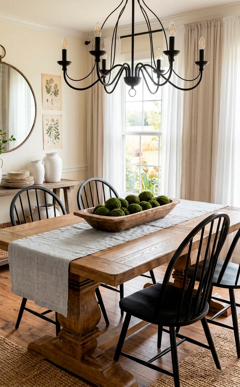 Ever thought about mixing chairs? Pairing a chunky wood table with sleek black metal chairs adds that modern edge to the farmhouse vibe. It’s all about the balance!