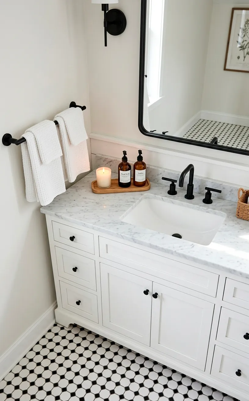 Swap your plastic soap dispenser for a matte black or amber glass one to instantly elevate the sink area. It’s a tiny change, but it makes a massive difference in the overall ‘clean’ aesthetic.