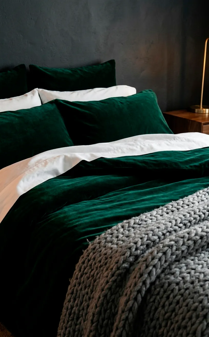 Alternatively, go full ‘monochrome’ with linens just a shade or two lighter than your paint. This approach feels expensive and very deliberate. FYI, linen fabric specifically adds a relaxed, lived-in vibe that keeps the ‘moody’ look from feeling too stuffy. 🛏️ Which style suits your personality more—the bright contrast or the moody monochrome? Either way, make sure those pillows look plump!