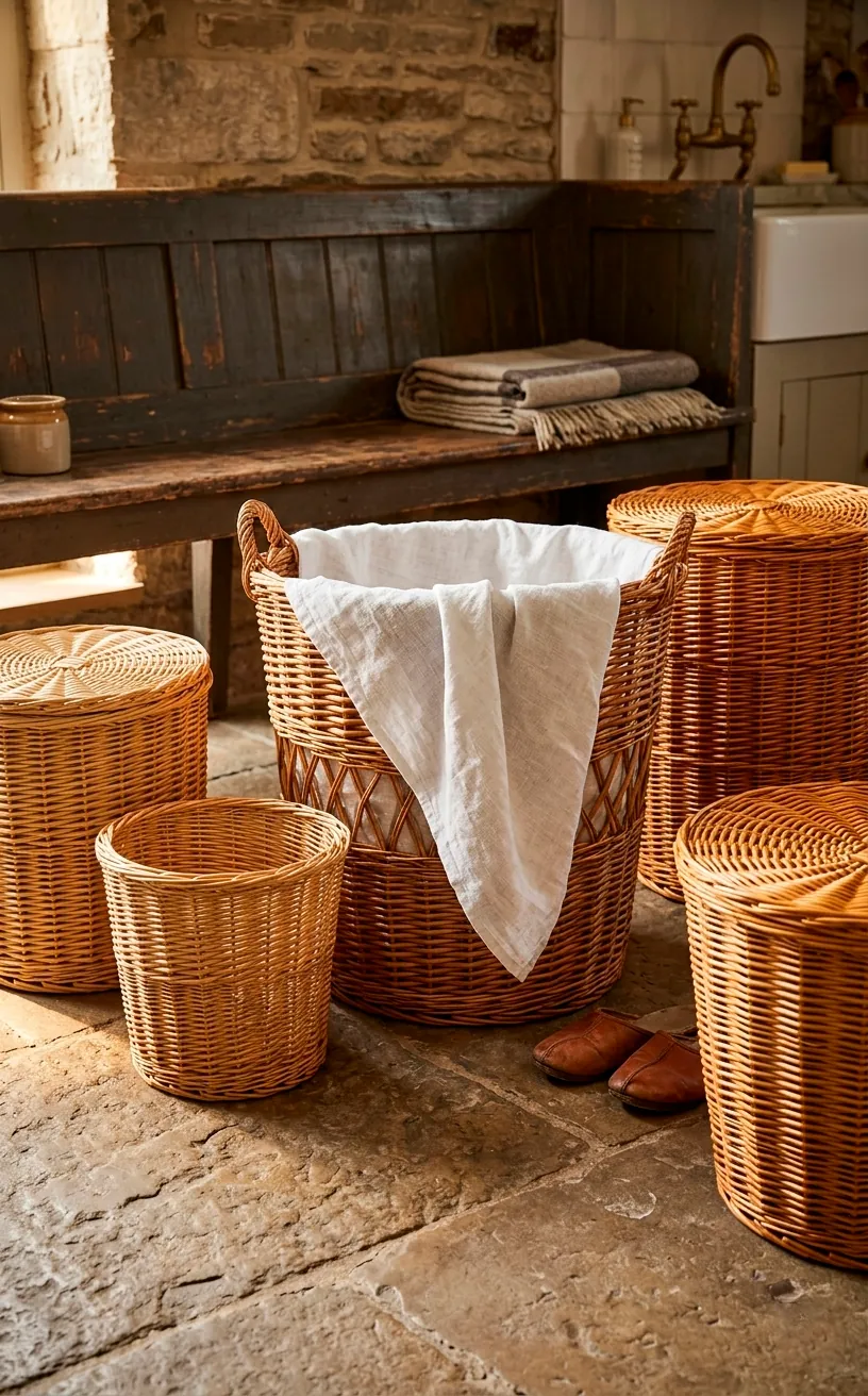 Can we all agree that neon plastic laundry baskets are the enemy of joy? I’ve replaced mine with woven willow and aged wire baskets, and honestly, my soul feels lighter.