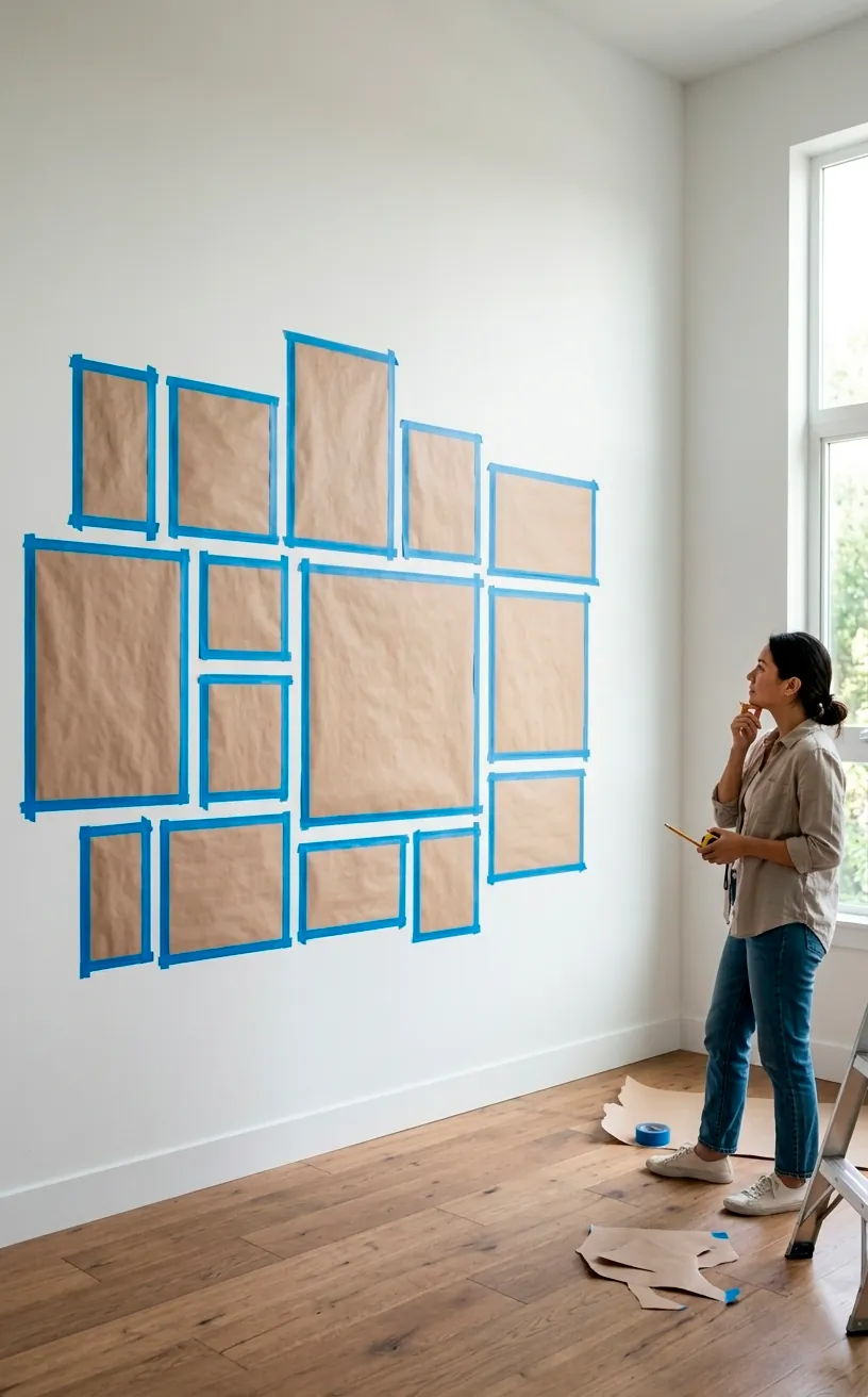 I once turned my wall into Swiss cheese because I skipped this step. Please, use butcher paper or old newspapers to map out your frames first. Tape these cutouts to the wall with painter’s tape to visualize the spacing. Does that large frame look better on the bottom left or dead center? Moving paper is much easier than patching drywall at midnight. This simple trick saves your sanity and your security deposit. It turns guesswork into a science.