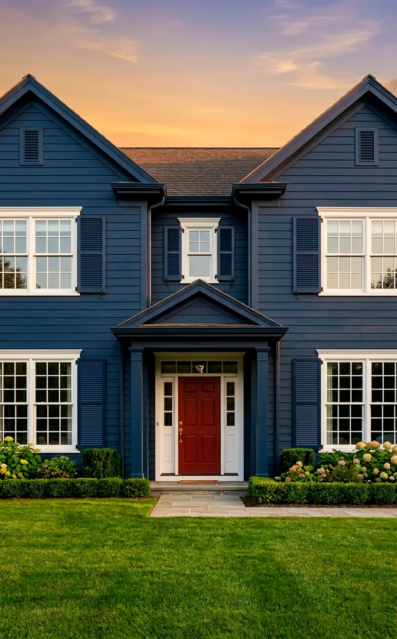 Navy blue is the sophisticated older sibling of the color wheel. While red is the life of the party, navy brings a sense of calm and luxury that’s hard to beat. I recently helped a friend pick a navy for her shutters, and the transformation was wild. It grounded the whole exterior and made the red door look intentional rather than accidental.