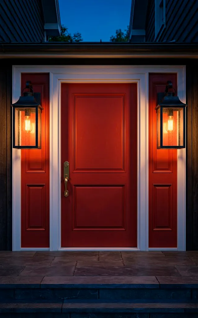 Lighting changes everything once the sun dips below the horizon. You could have the most beautiful door in the world, but if it’s shrouded in darkness, nobody cares. I recommend installing oversized wall lanterns with Edison bulbs to create a warm, inviting glow that highlights your color choices. It’s all about the drama! Why go for a tiny, puny light when a larger fixture adds so much architectural interest? Make sure the finish matches your door hardware for a cohesive look. A matte black lantern against white trim? Chef’s kiss. It’s the easiest way to make your house look like a million bucks overnight without a major renovation.