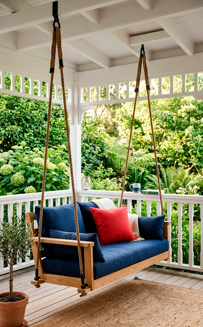 Decorating your porch shouldn’t feel like a chore. I like to swap out small items to keep the aesthetic fresh without spending a fortune. Think about texture—a chunky knit navy throw or a crisp white wooden bench. These elements add layers that color alone can’t provide.