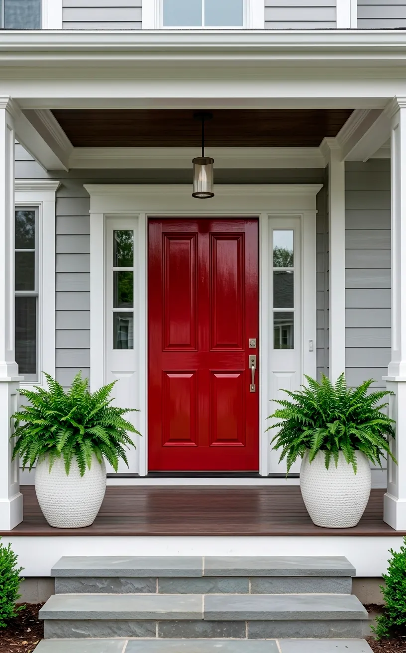 Why settle for a boring entrance when you can go bold? A cherry red door acts as the ultimate welcome sign, and frankly, it makes your neighbors look like they’re trying too hard with their muted pastels. I’ve noticed that red doesn’t just pop; it commands attention. You want a shade that leans slightly toward a classic fire-engine red or a deep brick to keep things sophisticated. Have you ever noticed how a red door makes the whole house feel more expensive? It’s basically the lipstick of home design. Just make sure you pair it with crisp white trim to avoid looking like a low-budget horror movie set. Honestly, it’s a vibe that never goes out of style. FYI, red paint fades fast in the sun, so buy the high-quality stuff!