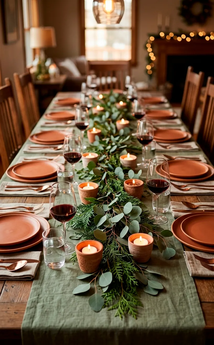 Let’s talk about that Christmas feast. Your guests want to feel relaxed, not overwhelmed by a mountain of gold-plated tinsel. I love using linen napkins in soft sage against a terracotta-toned runner. It creates a stunning visual contrast that feels grounded and earthy. Plus, it hides red wine stains way better than a white tablecloth would—FYI, that’s a professional tip from someone who is very clumsy. 🏺