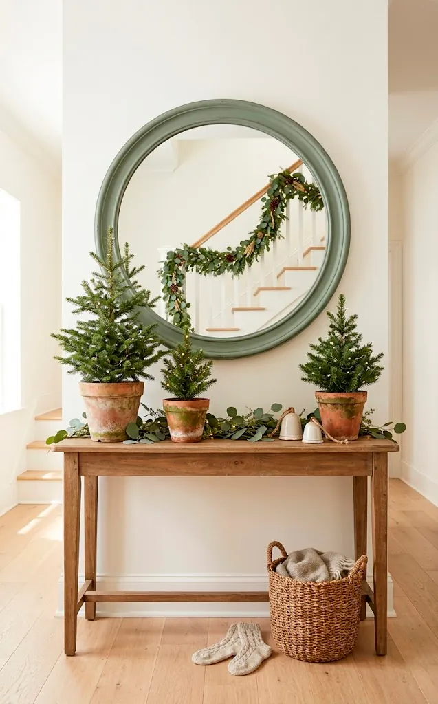 The earthy aesthetic works so well because it feels alive. Terracotta pots aren’t just for your dying summer succulents; they make fantastic vessels for mini Christmas trees on your mantel or entryway table. I find that the orange-red hue of the clay makes the green of the pine pop in a way that feels totally natural. 🌿