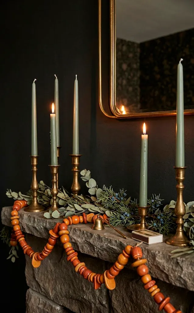 I personally love adding some vintage brass candle holders to a sage-colored mantle. The golden glow of the flame against the brass creates a flicker that feels magical. It’s like something out of a fairytale, but without the tacky glitter.
