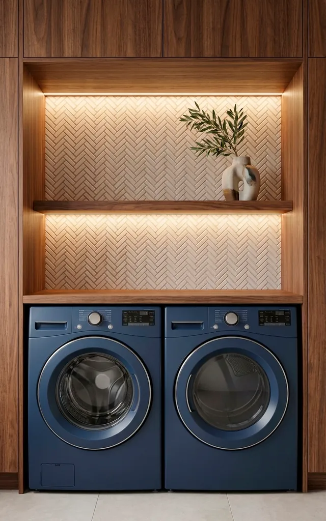 Just because it’s a utility room doesn’t mean it should look boring. I added removable wallpaper to my nook to give it some life. A bold botanical pattern transforms the space from a chore-zone to a retreat. Choose water-resistant options to handle the humidity from the dryer. Why settle for plain white walls when you can have a tropical paradise? It makes Monday morning laundry a lot less tragic. :/