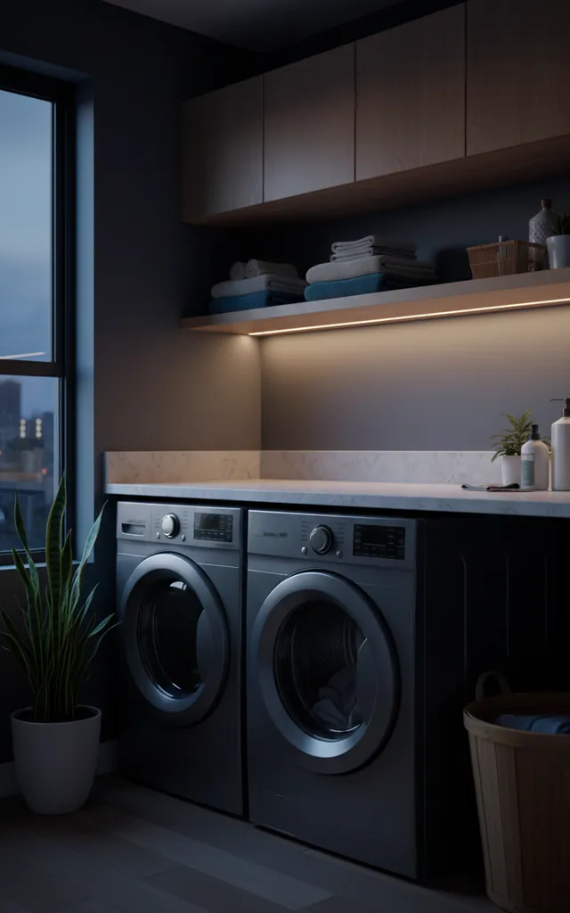 Dark corners make a small room feel like a dungeon. I always prioritize under-cabinet LED lighting to brighten the workspace. It eliminates shadows and makes the nook feel twice as large. Bright, cool-toned bulbs keep things crisp, while a statement pendant lamp adds a bit of personality. Who wants to sort darks from lights in the shadows? FYI, good lighting also helps you catch those stubborn stains before they go through the wash.