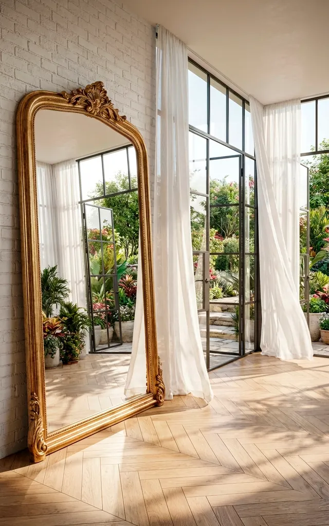 Natural light does most of the heavy lifting in a sunroom, but you can actually trick the eye to make it feel even brighter. I love hanging a massive mirror opposite the largest window because it bounces the sun into every dark corner. Why settle for one sun when you can have two? FYI, choosing sheer, gauzy curtains allows the light to filter in without making the room feel like a literal oven. These light fabrics catch the breeze beautifully and add a soft, romantic movement to the space that heavy drapes just can’t match. You’ll notice the difference immediately.