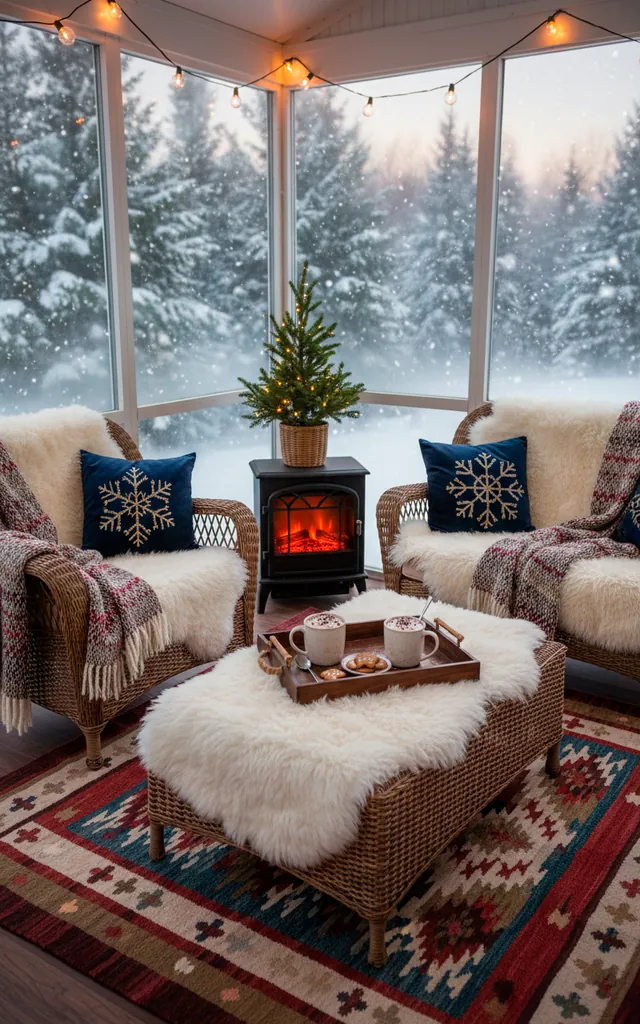 Don’t let your sunroom decor get stale! I love swapping out small details as the seasons change to keep the energy fresh. In the summer, I go heavy on the lemons, bright blues, and lightweight linens. When winter hits, I bring in the faux sheepskin rugs and heavy velvet pillows to trap the heat and keep things snug. Why keep the same look for twelve months? IMO, a quick cushion swap is the cheapest way to feel like you’ve moved into a new house. It keeps you excited about spending time in your sun-drenched sanctuary all year long.