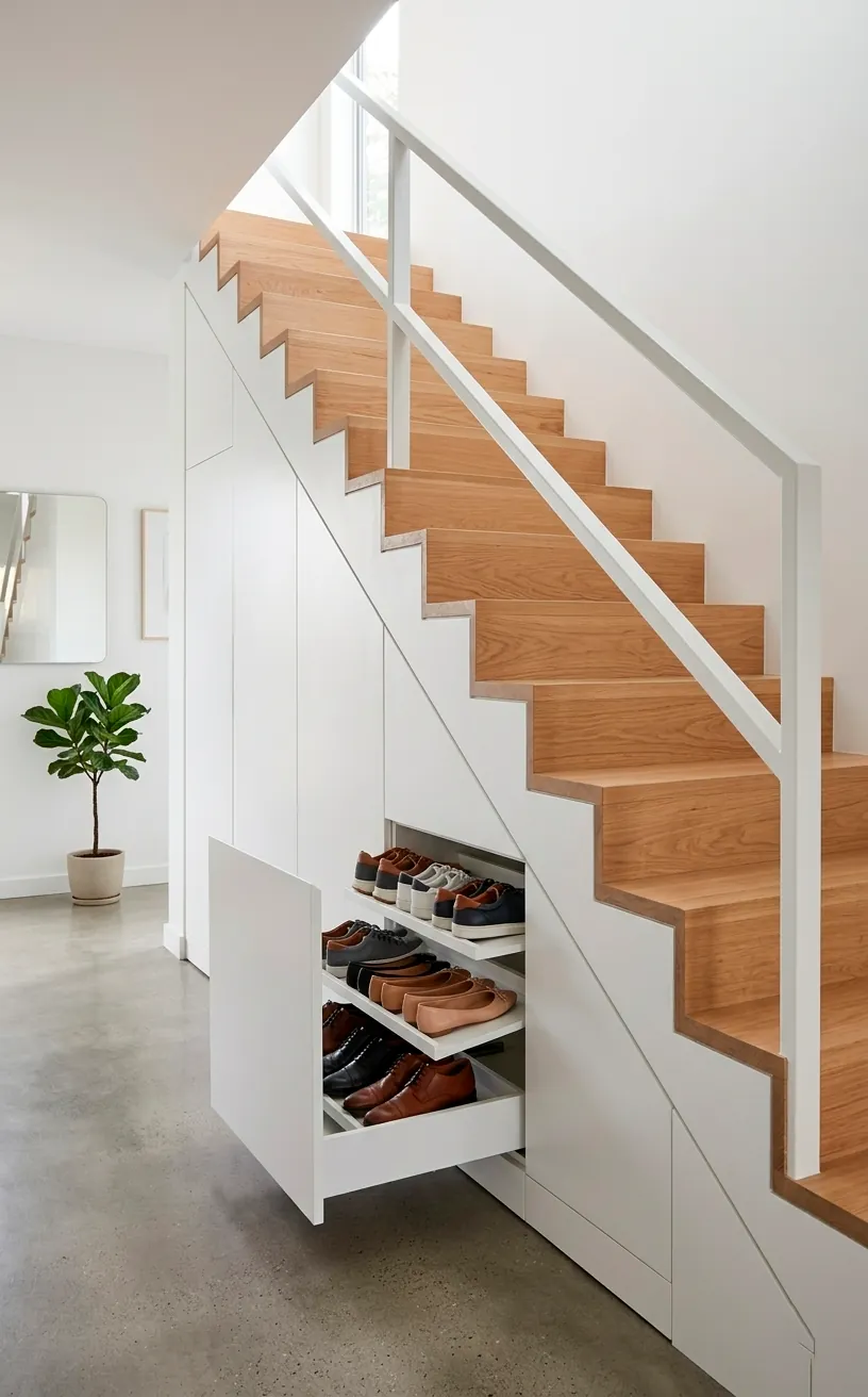 Why waste that awkward triangle of space under the stairs? Turn it into a custom wine cellar or a cozy reading nook. I turned mine into a pull-out shoe closet, and it changed my life. No more tripping over sneakers at the front door! Custom cabinetry makes your staircase work harder for you. It’s all about maximizing every inch while keeping the aesthetic clean. Who doesn’t love a bit of hidden functionality? It’s the smartest way to add value to your home without expanding the footprint.
