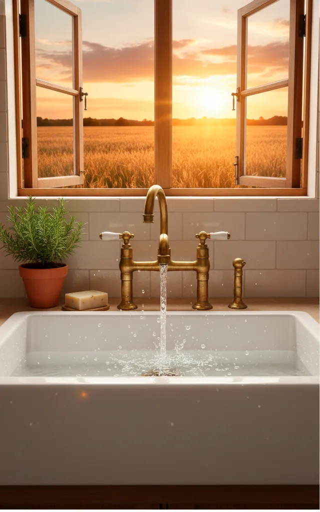 Nothing says cottagecore quite like a massive apron-front sink. I prefer fireclay or porcelain because they feel substantial and timeless. FYI, these sinks handle giant soup pots like a dream, which makes them as practical as they are pretty. Pair your sink with an unlacquered brass faucet to ensure a stunning patina over time. Have you ever considered how much time you spend at the sink? You might as well make it a view worth having. I suggest adding a small linen skirt underneath the sink for extra charm.