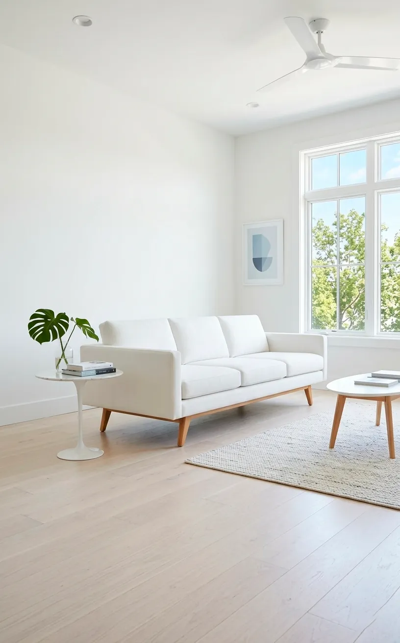Okay, total white-out can be a bit much even for me. I balance the brightness with light oak or birch accents. These natural tones add just enough warmth to keep the room from feeling like a spaceship.