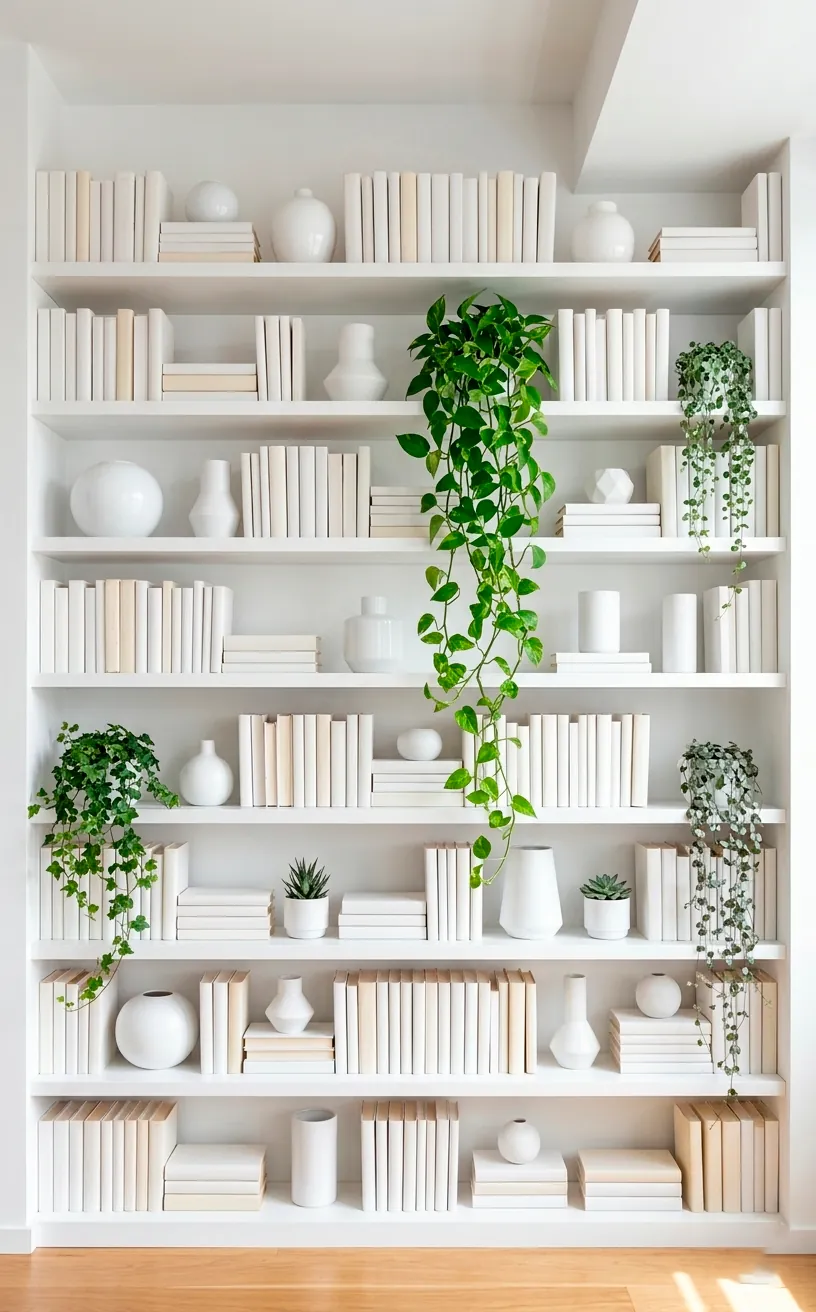 I use vertical space for books, plants, and even my mountain of ceramic mugs. By keeping everything white-on-white, the shelves don’t feel like they’re looming over you. It keeps your eyes focused on the openness of the room rather than the clutter of your stuff. ✨