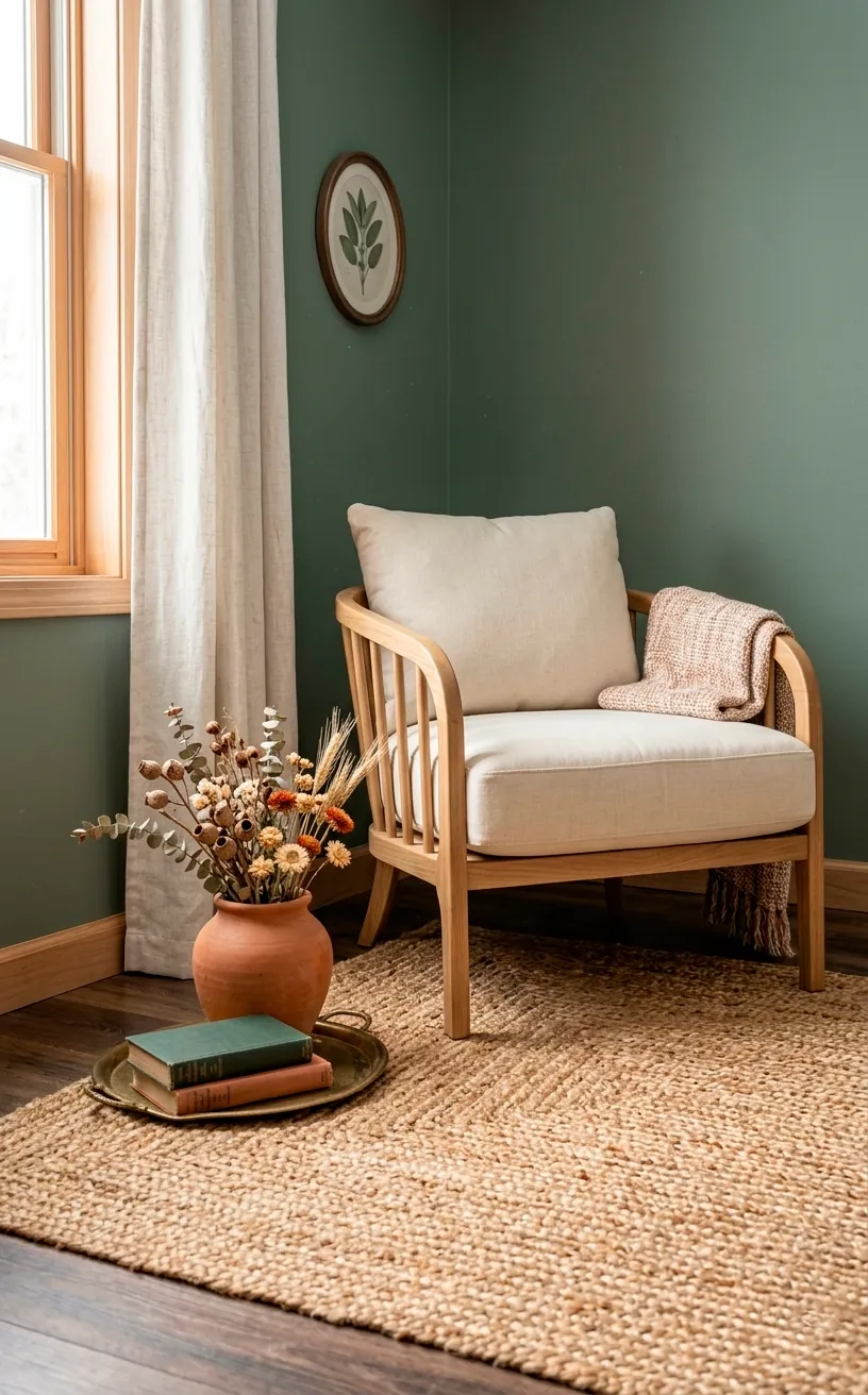 If you want to level up the “peaceful” factor, you need to think about what you’re putting against those green walls. I’m a huge fan of mixing in natural elements. Pairing sage green with light-toned wood and organic cotton creates a tactile heaven that makes you want to cancel all your plans. It’s the “hygge” vibe but with a bit more personality than the standard beige-on-beige look. Does anyone actually like living in a boring, clinical beige box anymore? Probably not. Adding a few clay pots or a wool throw rug completes the look without making the space feel cluttered or overwhelming. It’s about balance, and sage green provides the perfect anchor for those earthy textures. 🕯️